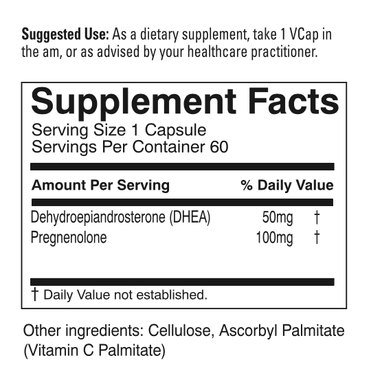 Combination of hormone precursors DHEA – Dehydroepiandrosterone (50mg) and Pregnenolone (100mg)